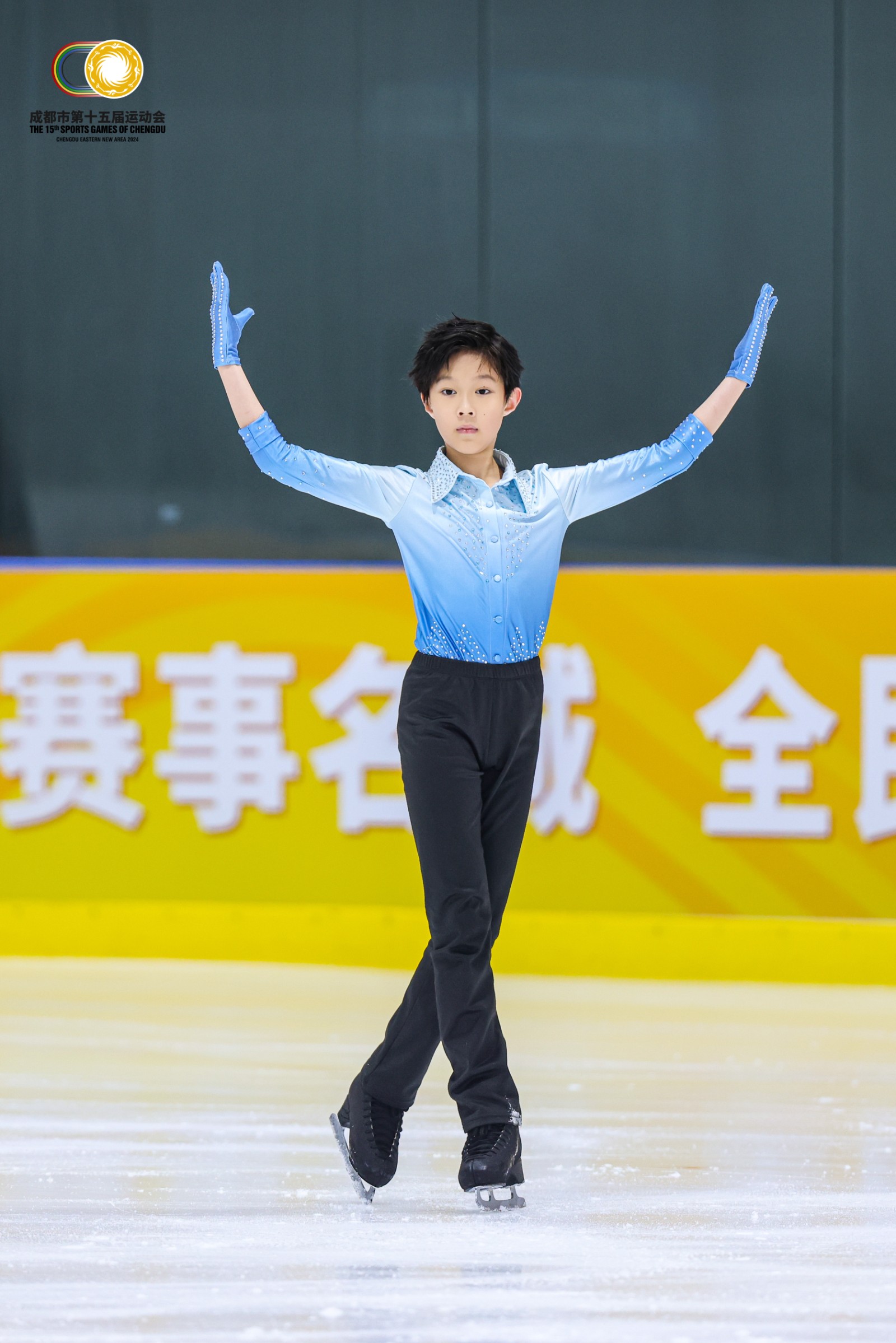 2024年8月22日,由成都市人民政府主办,成都市体育局、成都市教育局、锦江区人民政府承办,成都市少年儿童业余体育学校、成都市冰雪运动协会协办的成都市第十五届运动会青少年组花样滑冰比赛在成都加中冰上运动中心热烈举行。花样滑冰项目也是首次纳入市运会青少年组正赛,设置男子组、女子(甲、乙、丙、丁)组自由滑以及混合队列滑6个组别,吸引了来自成都全域的一百余名花样滑冰选手参赛,各组别运动员凭借精湛的技艺和坚韧不拔的拼搏精神,在冰面上绘就了一幅幅绚丽的画卷,为观众带来了一场无与伦比的视觉盛宴。